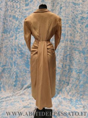 ABITO DA GIORNO, REALIZZATO IN CREPES DE CHINE, DI COLORE GIALLO SOLE, A STAMPA DI POIS NERI.