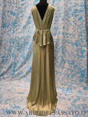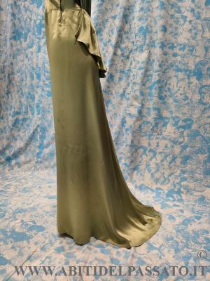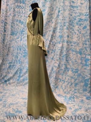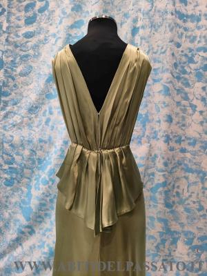 ABITO DA SERA REALIZZATO IN INVERSE SATIN, BICOLORE, NEI TONI DEL ROSA ANTICO E VERDE PISTACCHIO.