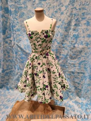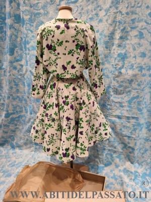 RARO ABITO DA COCKTAIL FIRMATO DALLA GRIFFE DI NINA RICCI, COMPOSTO DA ABITO INTERO, BOLERINO, CINTURA, SOTTOGONNA E COMPLETATO DALLA SUA SCATOLA DI CARTONE E VELINE, ORIGINALI.
