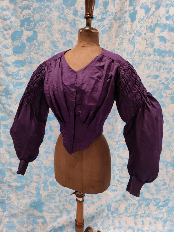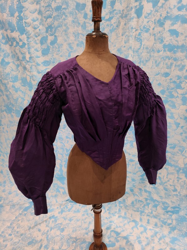 CORPINO DA GIORNO REALIZZATO IN TAFFETAS DI SETA DI COLORE VIOLA.