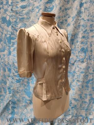1930-35, MANIFATTURA ITALIANA, PROVENIENZA CITTA' DI BOLOGNA PER QUESTA CAMICETTA DA GIORNO, REALIZZATA IN RASO DI SETA COLOR AVORIO.
