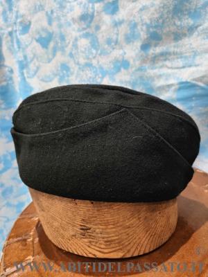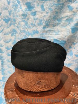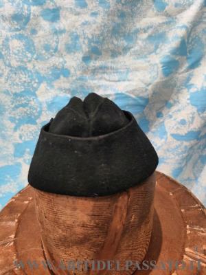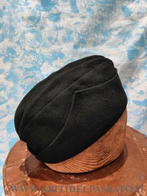 CAPPELLO A BUSTINA, REALIZZATO IN PANNO DI LANA DI COLORE NERO, FODERATO IN SETA, PROBABILEMNTE PER ABITO FEMINILE, APPARTENENTE AL PARTITO FASCISTA.