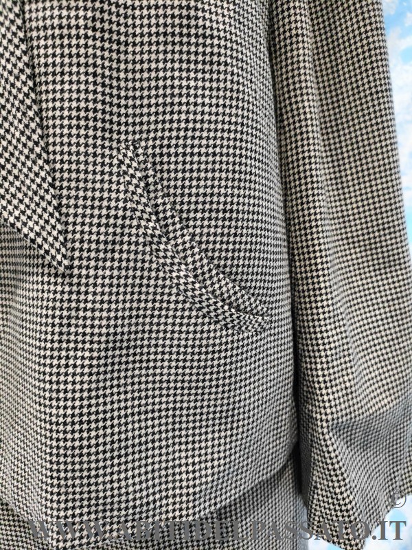 TAILLEUR DA GIORNO, REALIZZATO IN PIED DE POULE DI LANA, DI COLORE BIANCO E NERO.