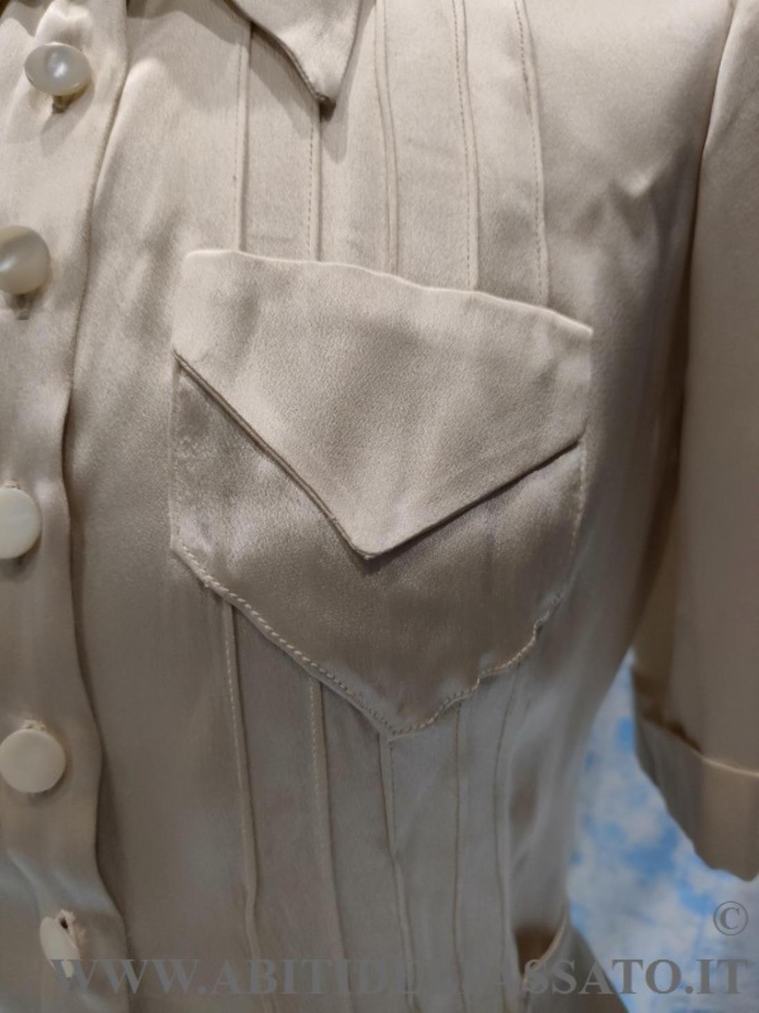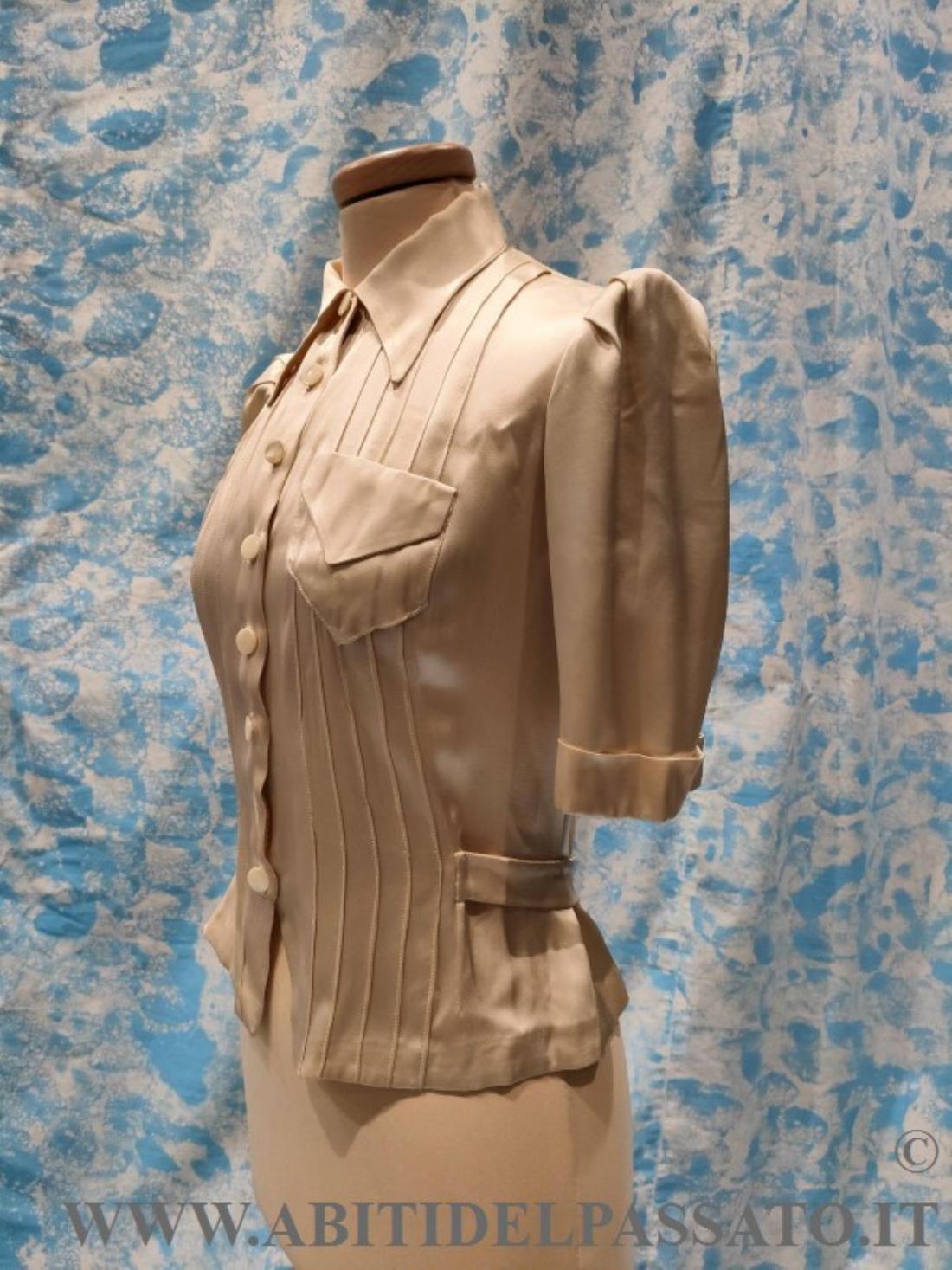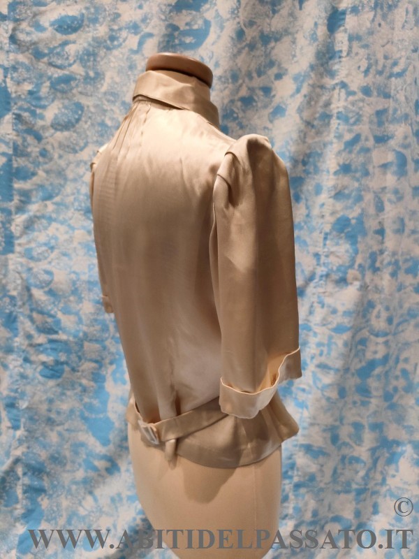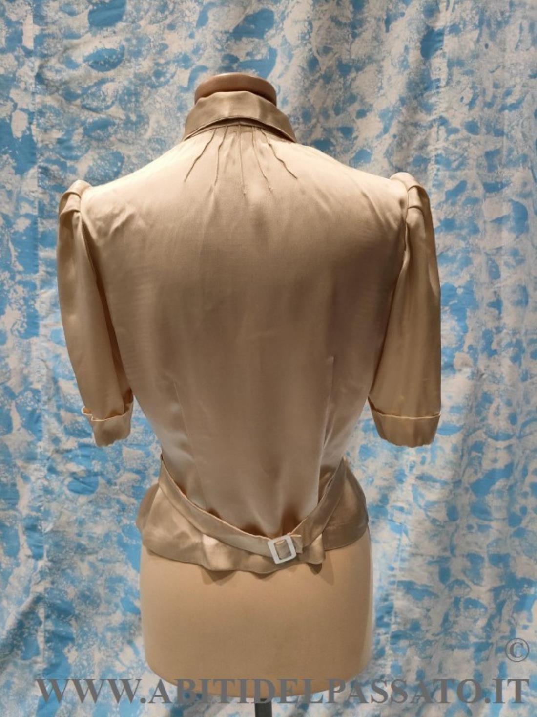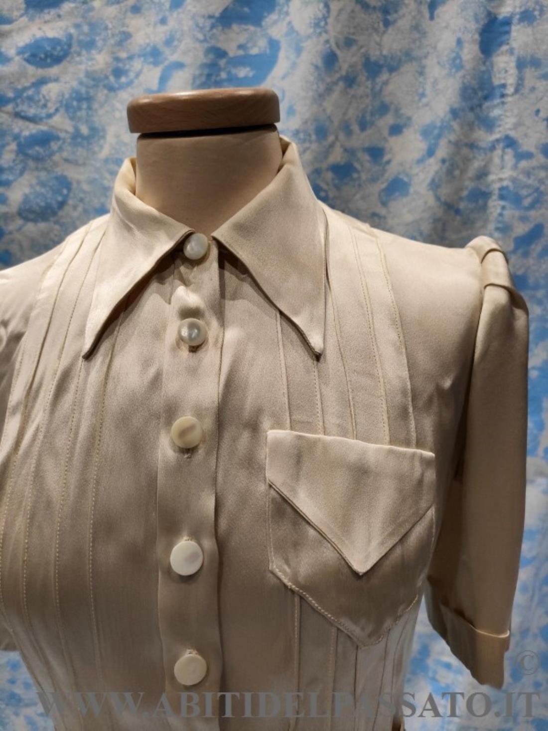 1930-35, MANIFATTURA ITALIANA, PROVENIENZA CITTA' DI BOLOGNA PER QUESTA CAMICETTA DA GIORNO, REALIZZATA IN RASO DI SETA COLOR AVORIO.