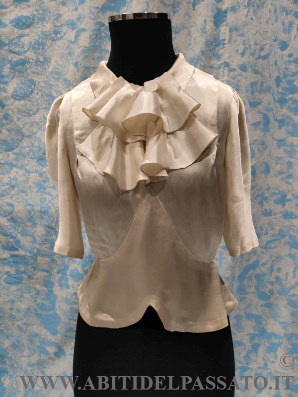 1930-35 CAMICETTA DA GIORNO REALIZZATA IN RASO DI SETA COLOR GHIACCIO.