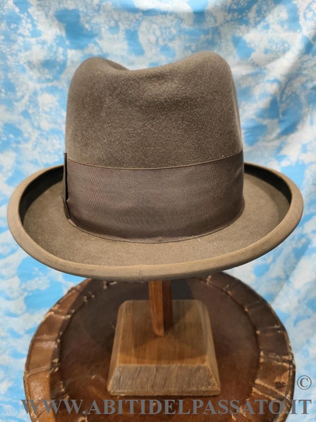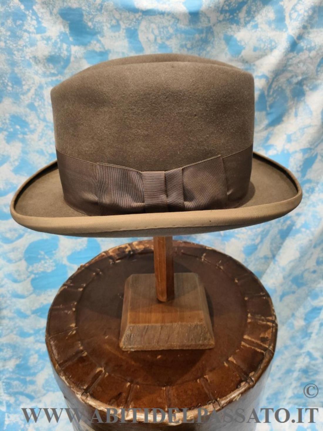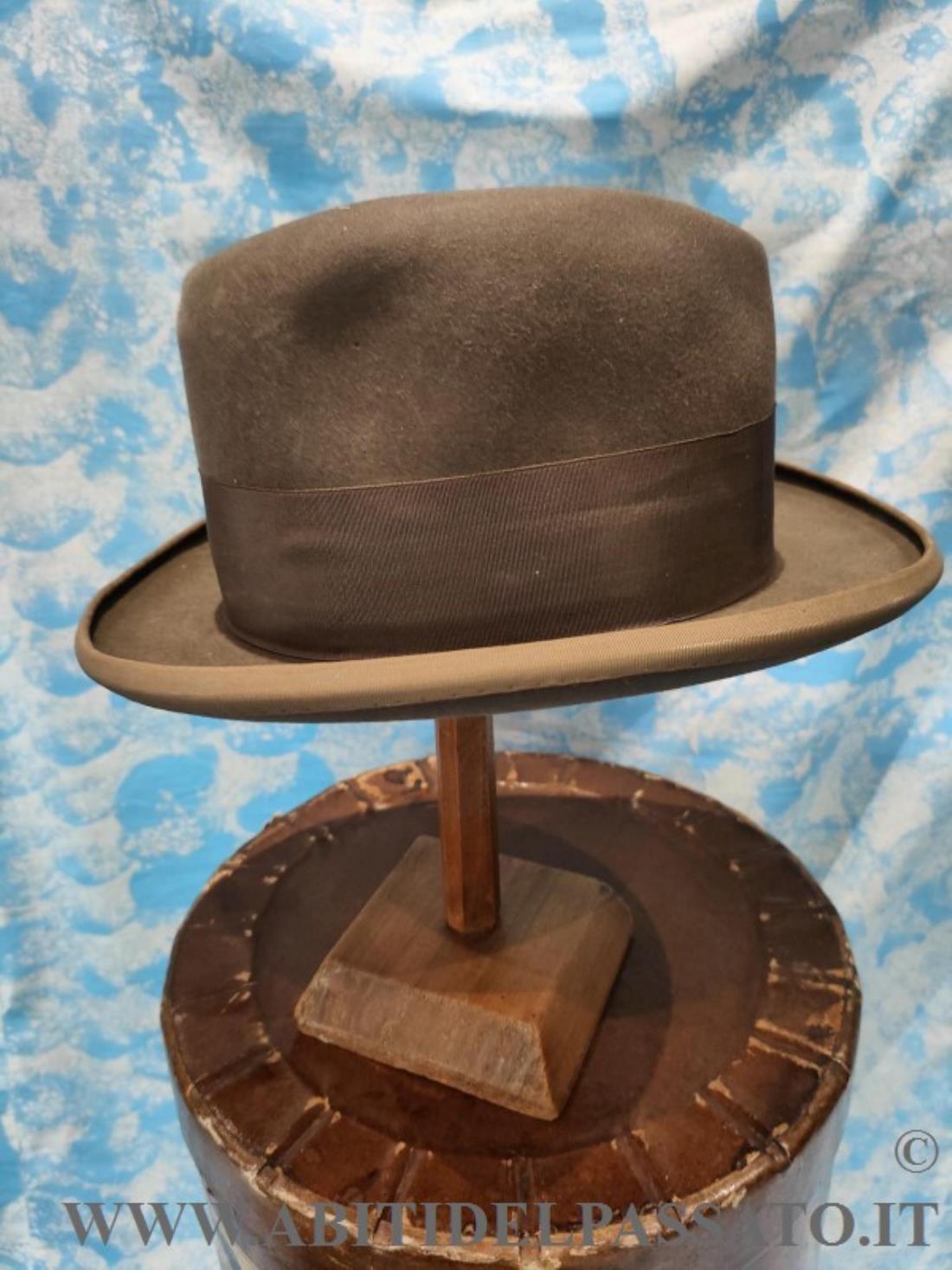 LOBBIA MASCHILE, REALIZZATO IN FELTRO COLOR CIOCCOLATO, DECORATO DA NASTRO DI RASO IN SETA IN TONO.