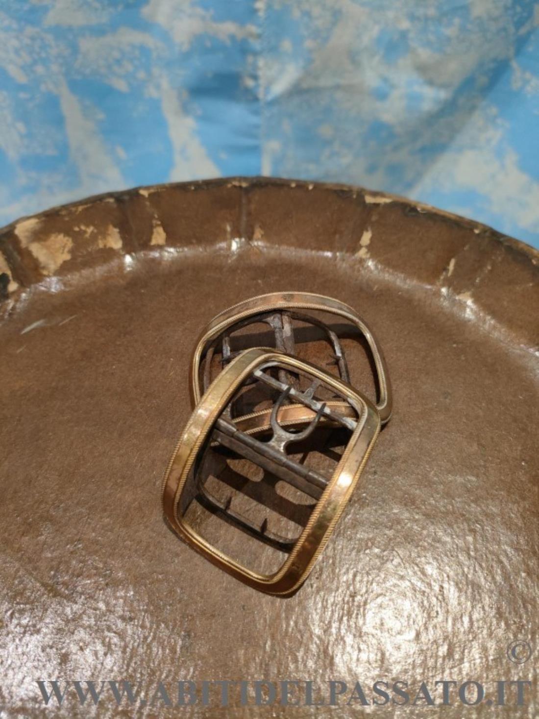 1760-1780, MANIFATTURA ITALIANA, CITTA DI BOLOGNA. COPPIA DI FIBBIE DA SCARPE, REALIZZATE IN METALLO DORATO (possibile ottone) E FERRO. CONDIZIONI ECCELLENTI