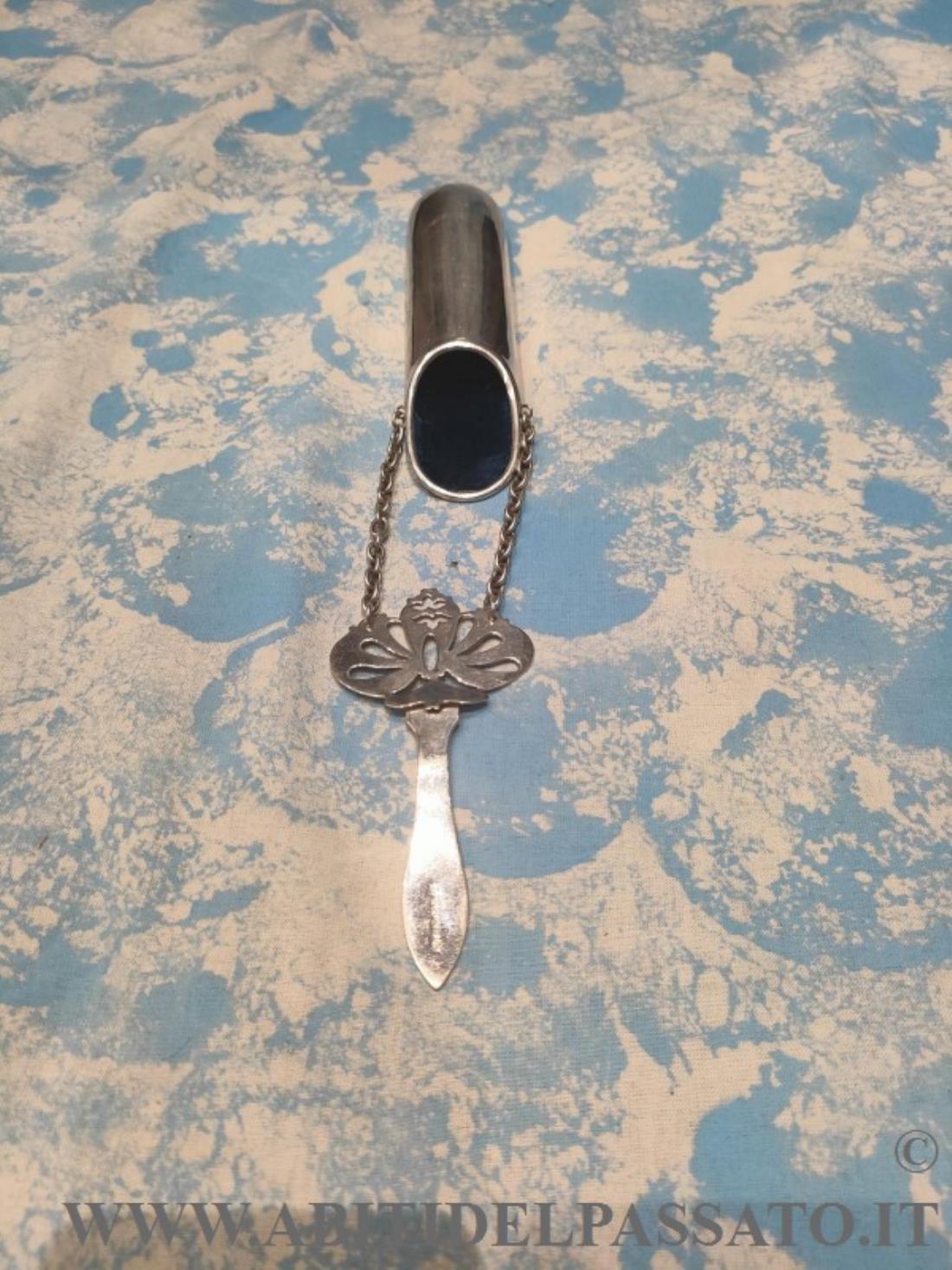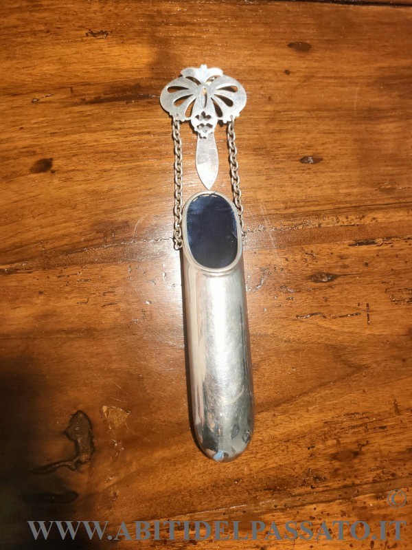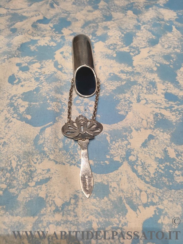 1903-1905, MANIFATTURA INGLESE, PUNZONI CITTA' DI LONDRA, PER QUESTA CHATELAINE PORTA OCCHIALI, REALIZZATA IN METALLO ARGENTATO. CONDIZIONI ECCELLENTI.