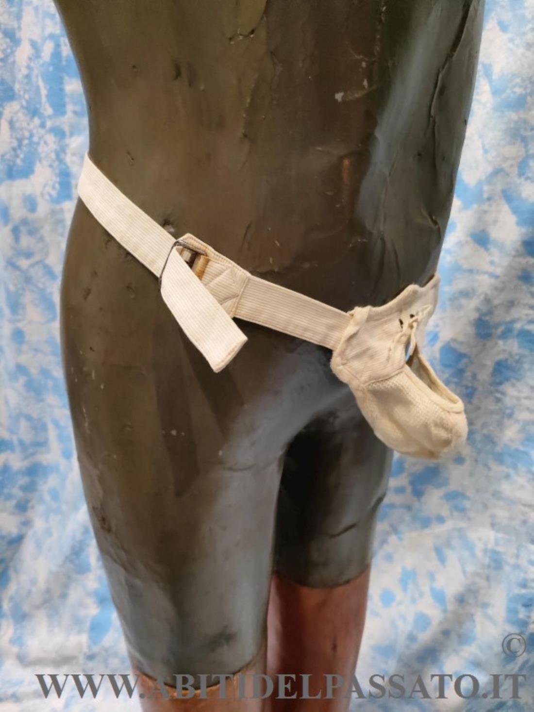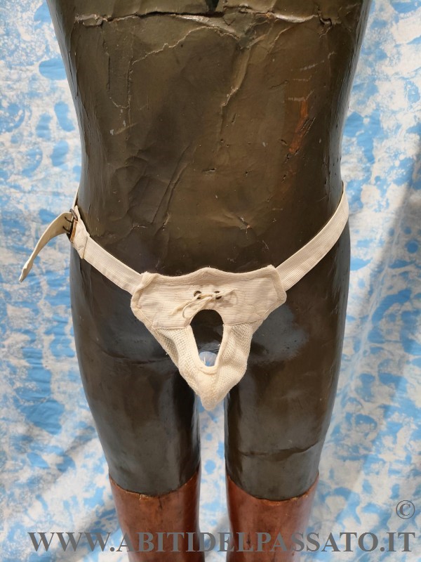 SOSPENSORIO REALIZZATO IN PIQUET E GARZA DI COTONE, CHIUSURA POSTERIORE MEDIANTE FIBBIA METALLICA. APERTURA FRONTALE REGOLABILE MEDIANTE LACCI.