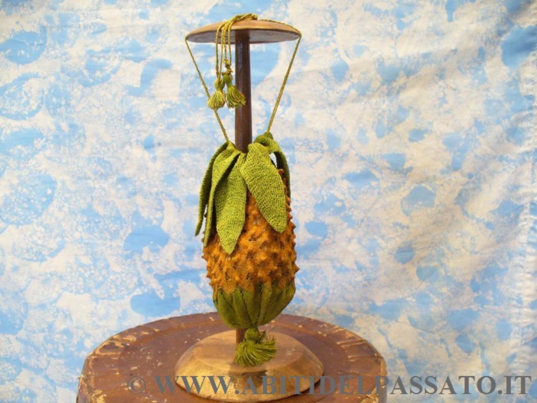 1800: STRAORDINARIA BORSETTA A FORMA DI ANANAS REALIZZATA IN FILO DI SETA NEI TONI DEL GIALLO E VERDE.