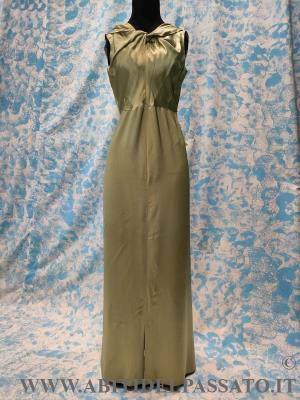ABITO DA SERA REALIZZATO IN INVERSE SATIN, BICOLORE, NEI TONI DEL ROSA ANTICO E VERDE PISTACCHIO.