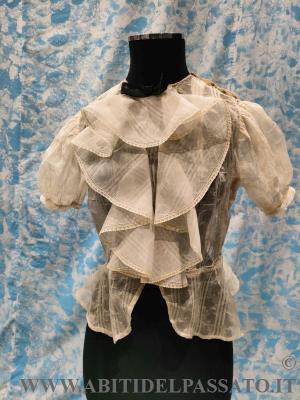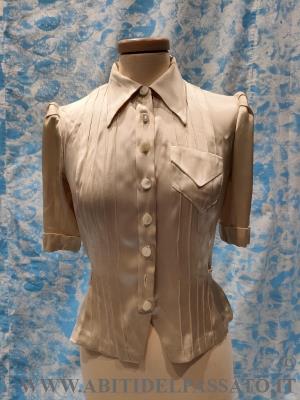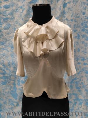 1930-35, MANIFATTURA ITALIANA, PROVENIENZA CITTA' DI BOLOGNA PER QUESTA CAMICETTA DA GIORNO, REALIZZATA IN RASO DI SETA COLOR AVORIO.