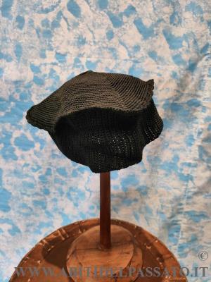RARO E PARTICOLARE CAPPELLINO REALIZZATO A FERRI ED UNCINTETTO, IN FILATO DI SETA DI COLORE NERO. UNO DEI PRIMI CAPELLI REALIZZATI DALLA MAISON FRANCESE. L'ETICHETTA RISULTA ESSERE ...