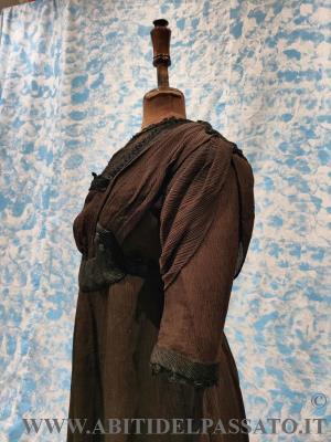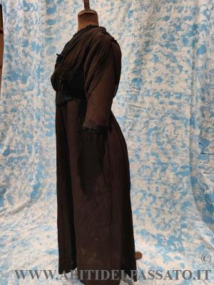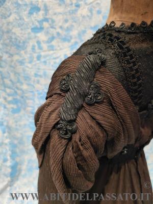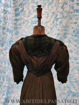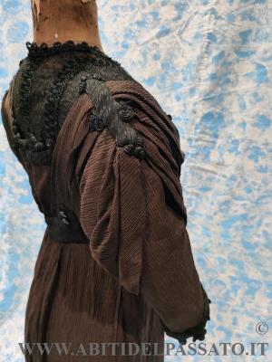 ABITO DA GIORNO INTERO CON MANICA A TRE QUARTI, REALIZZATO IN CREPONNE DI SETA IN COLOR CIOCCOLATO E NERO.