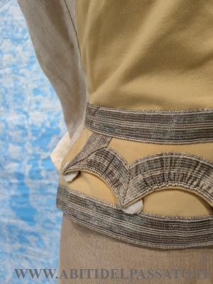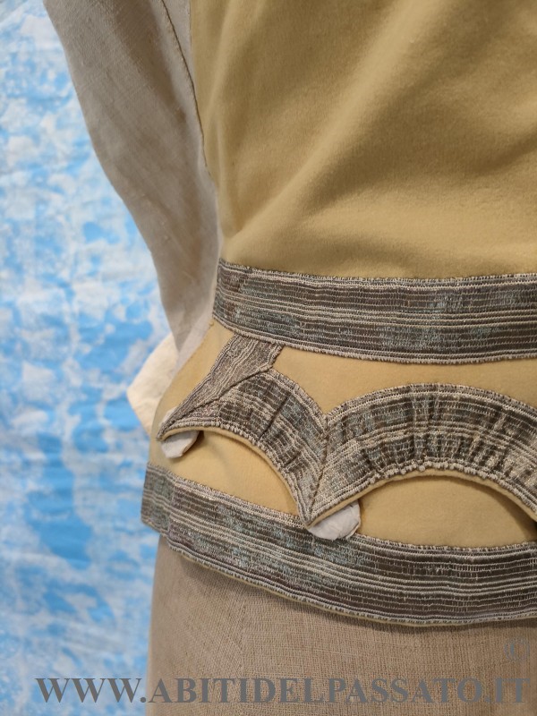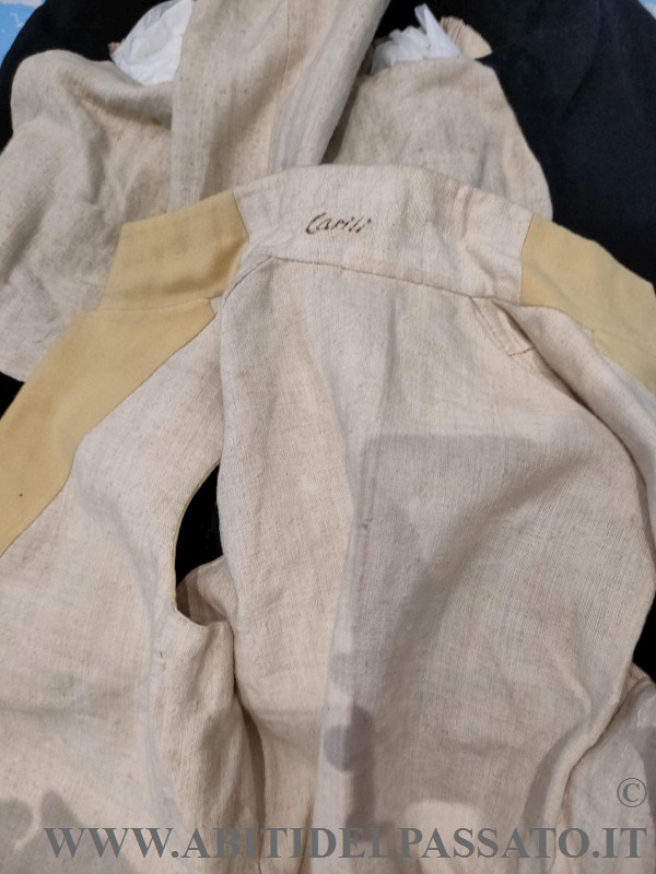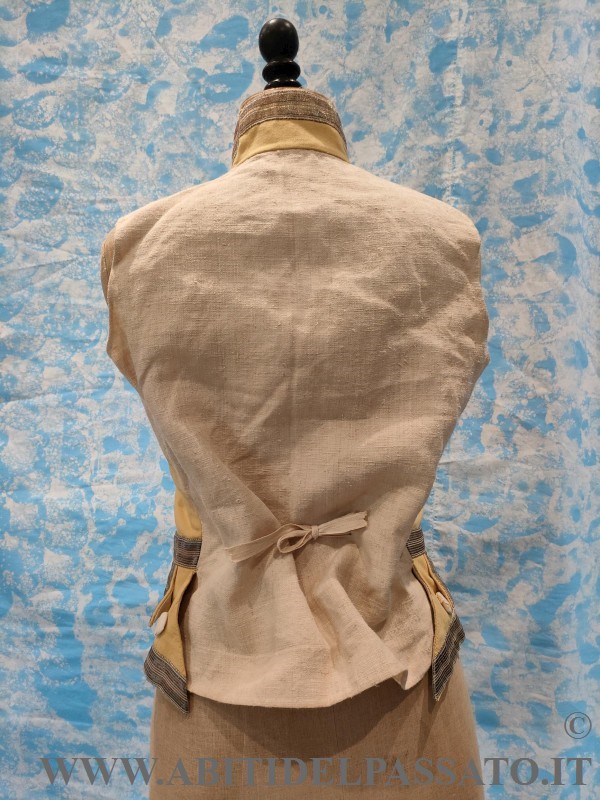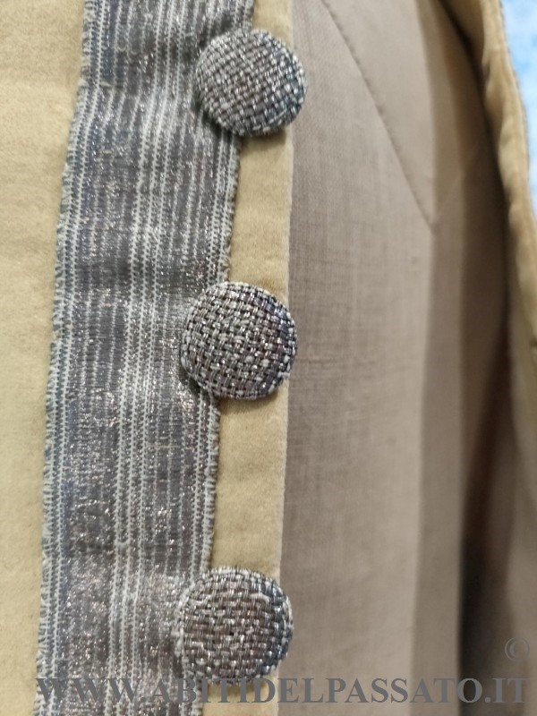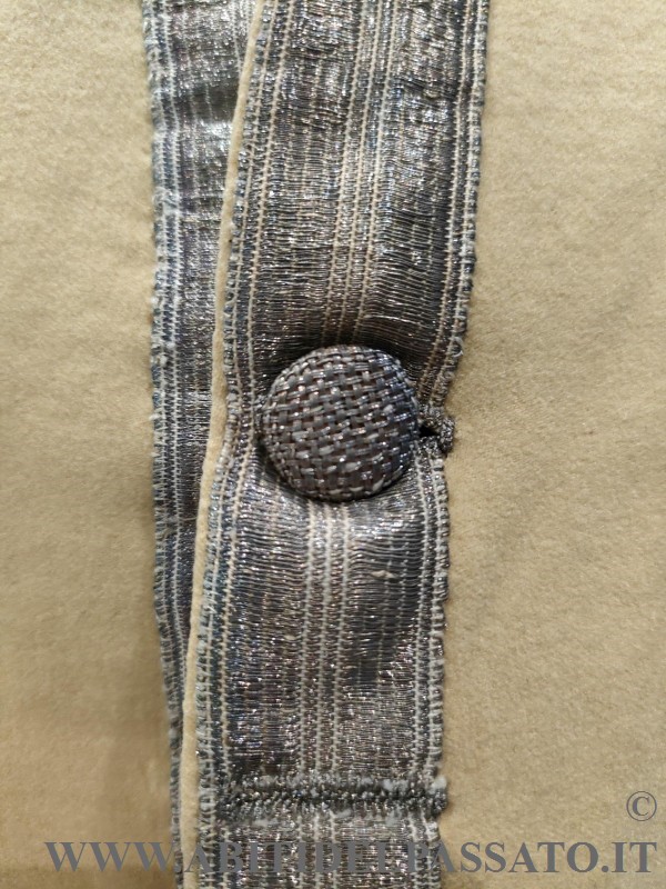GILET DA SERVIZIO, REALIZZATO IN PANNO DI LANA COLOR BURRO, GALLONI METALLICCI, BOTTONI RICAMATI, FODERA GREZZA DI LINO.