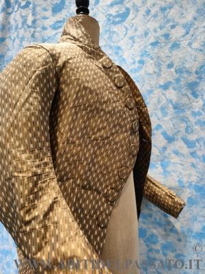 MARSINA, PROVENIENTE DA ANTICA ED IMPORTANTE FAMIGLA BOLOGNESE. REALIZZATA IN SETA CHINE', NEI TONI DEL BRONZO, AVORIO, COLOR CIOCCOLATO E AZZURRO.