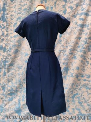 ABITO INTERO, LUNGO AL GINOCCHIO, CHIUSO POSTERIORMENTE DA ZIP, MANICA CORTA A CHIMONO CON TASSELLO, COMPLETO DI CINTURA RIVESTITA NELLO STESSO TESSUTO.