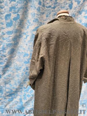 MANICHE LUNGHE CON ALTO RISVOLTO. IL CAPO E' FODERTO IN RASO DI SETA GRIGIO PIOMBO.