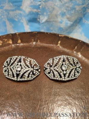 1890 CIRCA, MANIFATTURA ITALIANA, COPPIA DI FIBBIE DA SCARPE, REALIZZATEE IN METALLO E DECORATE DA PIETRE IN VETRO.