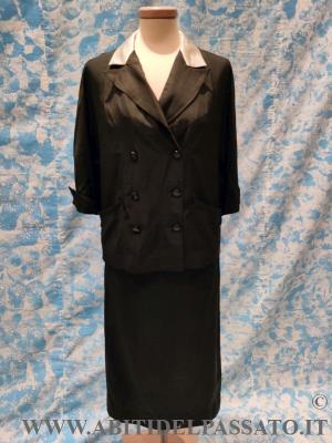 TAILLEUR REALIZZATO IN CHANTUNG DI SETA NERO E RASO DI SETA BIANCO.