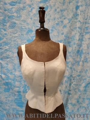 1900 CIRCA, MANIFATTURA ITALIANA, PROVENIENZA CITTA' DI PADOVA, PER QUESTO BUSTINO SPORTIVO, REALIZZATO IN TELA DI LINO, DOPPIATO DI SE STESSO, CHIUSURA FRONTALE MEDIANTE 20 GANCI.