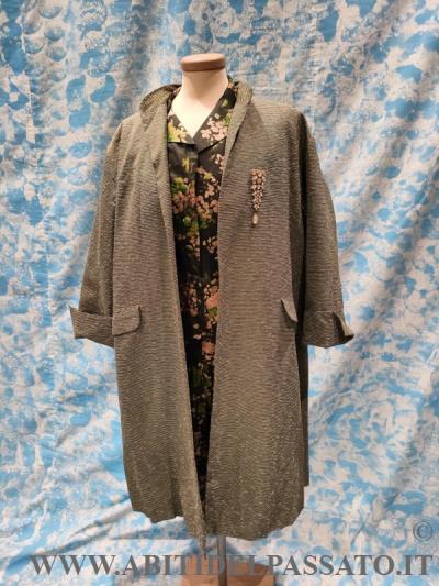 1959:MANIFATTURA ITALIANA, ETICHETTA: SARLI (Fausto Sarli) ROMA NAPOLI. ELEGANTE SOPRABITO REALIZZATO IN LANA E SETA IN COLOR TORTORA. CONDIZIONI OTTIME.