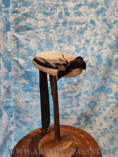 MERAVIGLIOSO CAPPELLO REALIZZATO IN VELLUTO A COSTE DI COLORE BIANCO LATTE, ARRICCHITO DA RICAMI DI PERLINE, TULLE PLUMETIS REALIZZATO A MANO, PIUME...