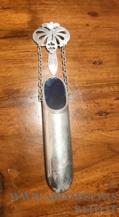 1903-1905, MANIFATTURA INGLESE, PUNZONI CITTA' DI LONDRA, PER QUESTA CHATELAINE PORTA OCCHIALI, REALIZZATA IN METALLO ARGENTATO. CONDIZIONI ECCELLENTI.
